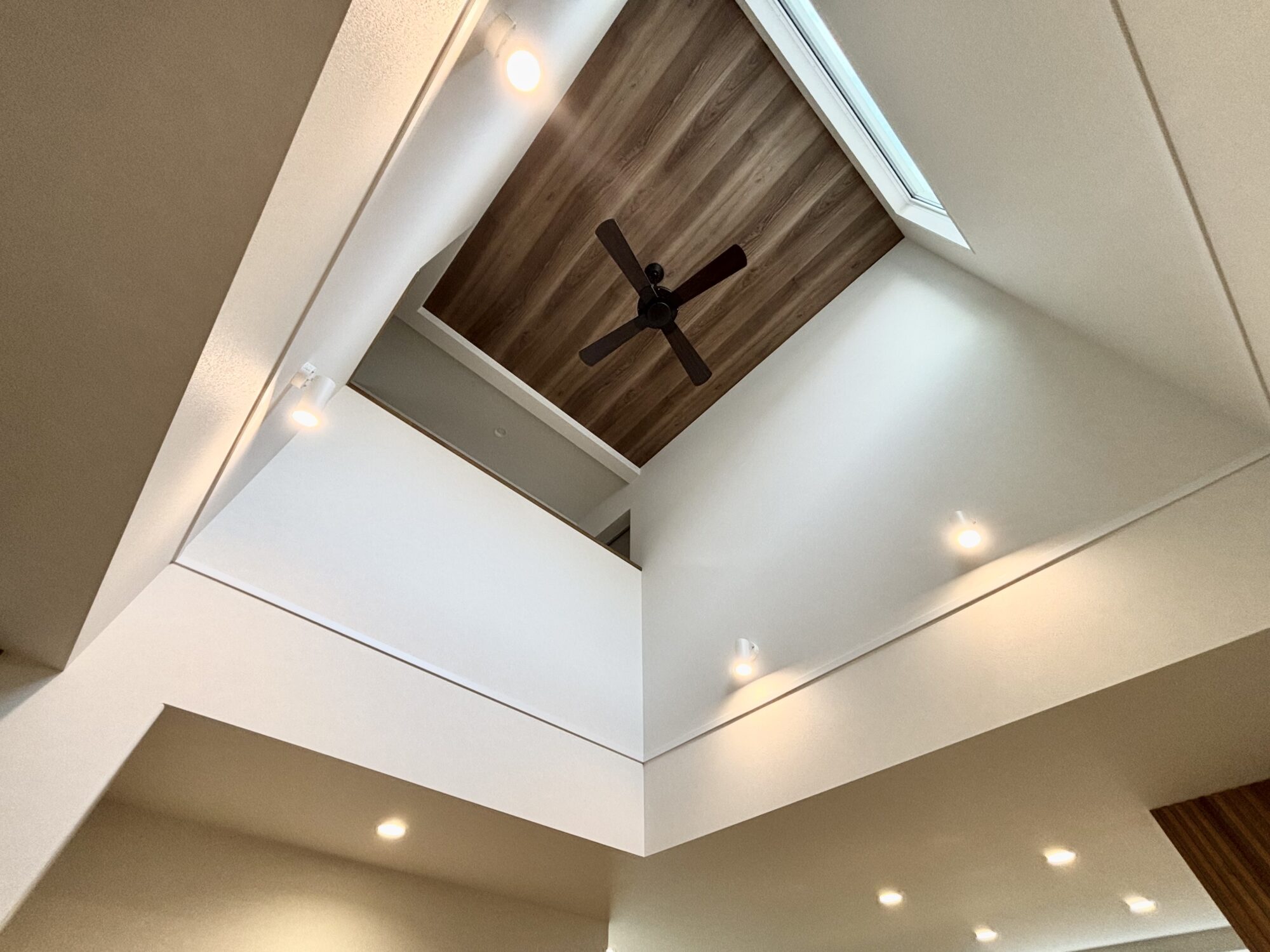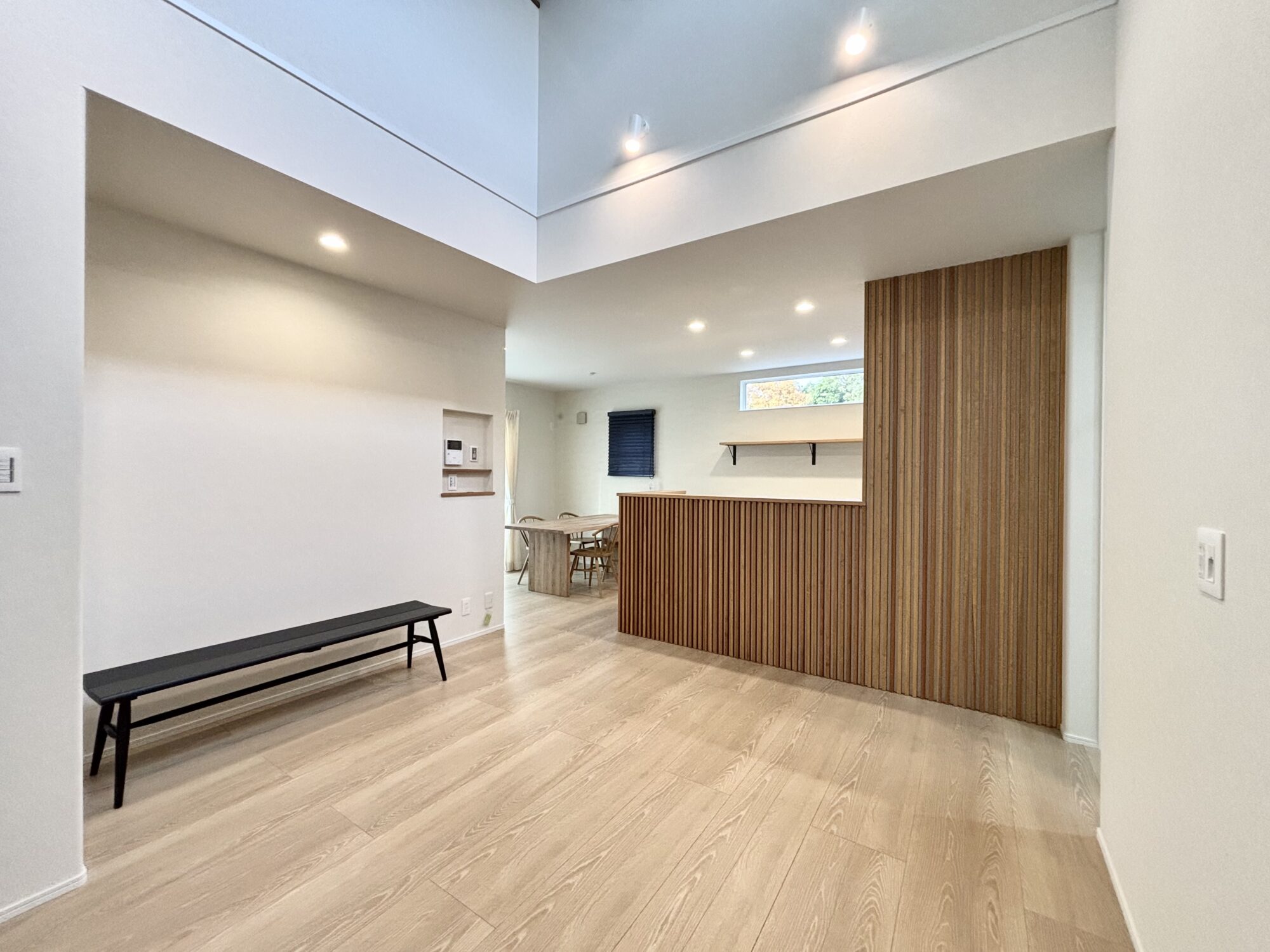 リビングの上は吹き抜けになっていて、空間をぐっと広く感じさせてくれます。