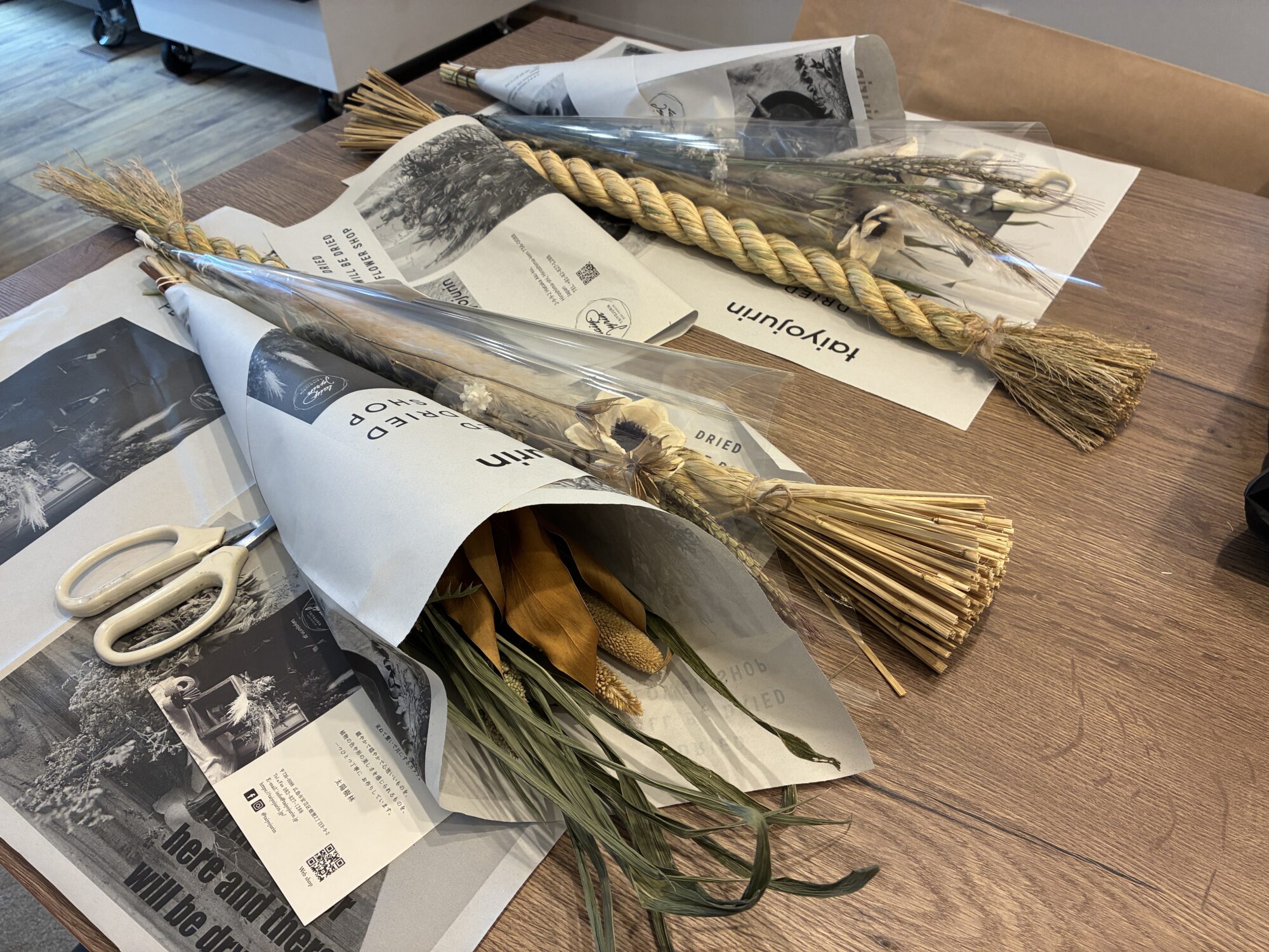 そんなしめ縄を華やかに彩るのは太陽樹林さんの美しく個性豊かなドライフラワーたち。