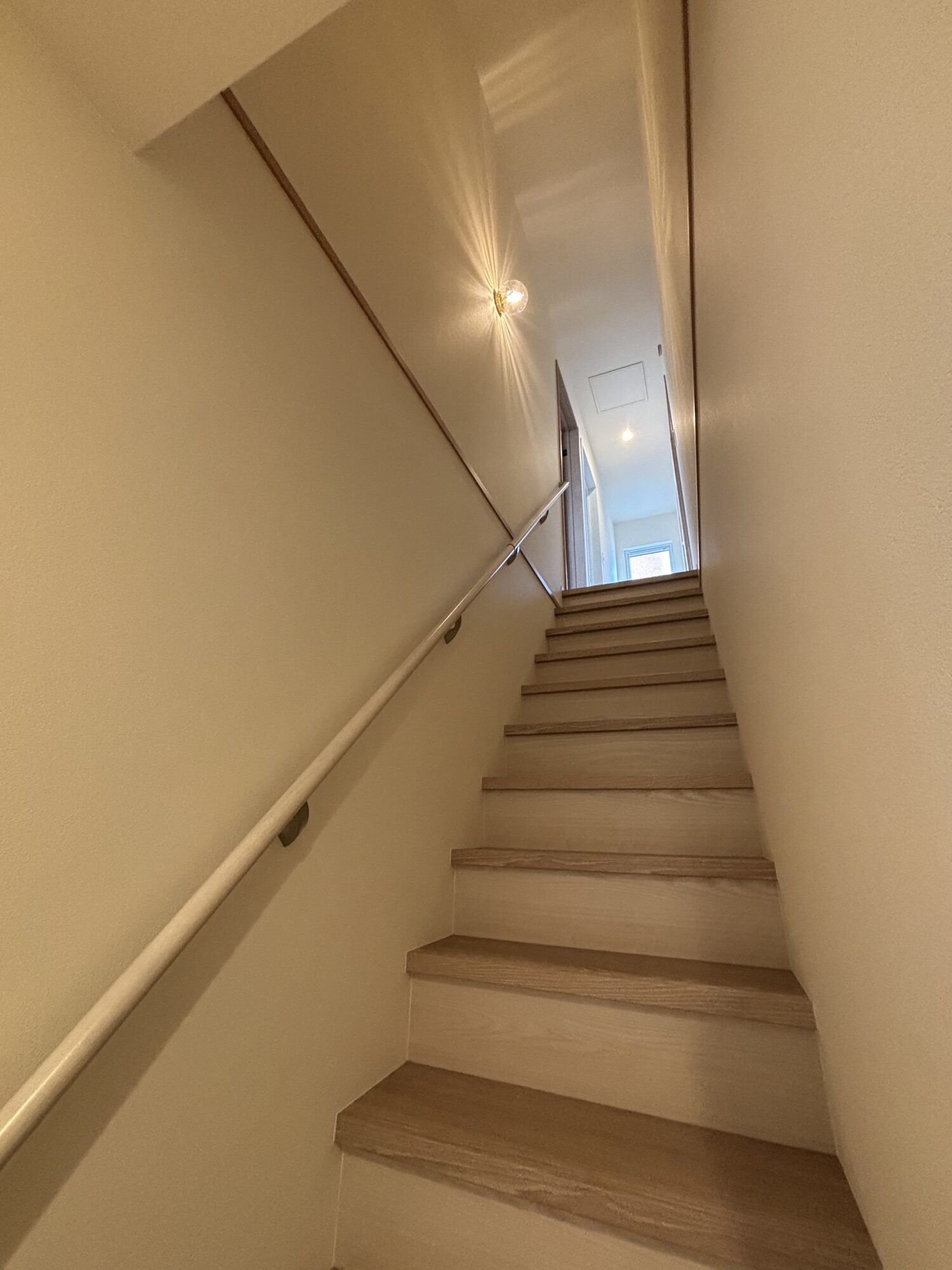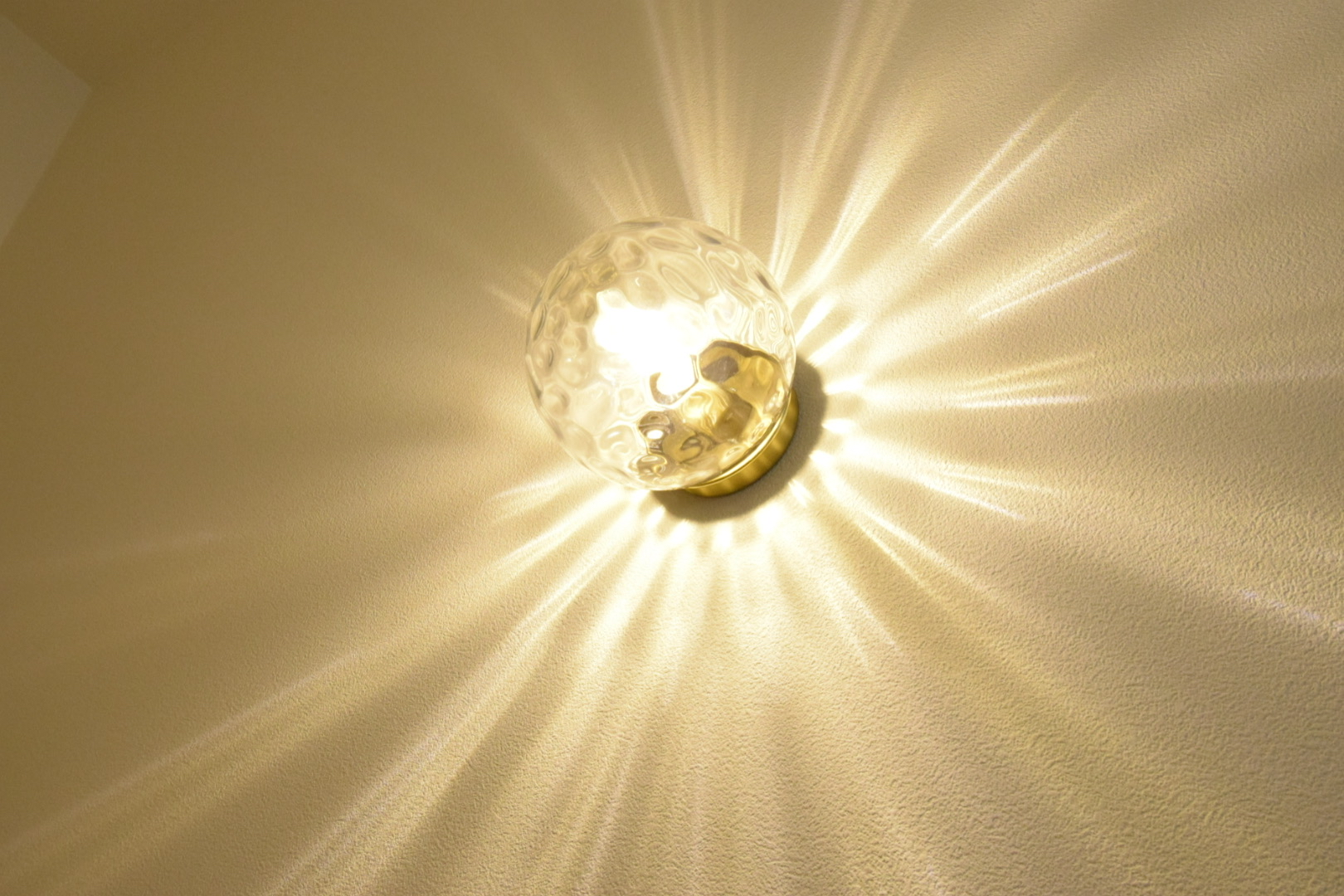 階段を上がった先には揺らめく凹凸が美しいガラス製の照明。