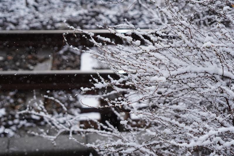 ちなみに↓の写真はその日に雪をまとっていたユキヤナギです。春になると白く小さな花が雪が降り積もったように咲くことからその名がつけられているユキヤナギですが、本物の雪の華をまとっている様子がなんだか洒落ていたので撮りました🥰