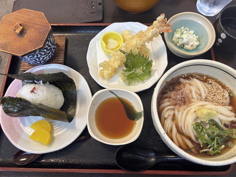 私は人気のランチセットを頼んだのですが、コシのあるうどんは喉越しが良く、そして握りたてのおにぎりもホッカホカの絶妙な塩気と握り加減で…、とっても大満足のランチでした🤗✨